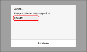 Zodra dit scherm verschijnt, moet u binnen 10 minuten de WPS pincode registreren op de draadloos LAN-router.