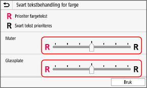 I [Mater] eller [Glassplate] justerer du med prioritet for å gjengi enten fargetekst eller svart tekst.