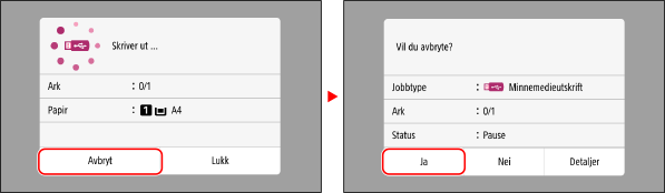 I så fall, kan du kansellere utskrift ved bruk av kontrollpanelet på maskinen eller Fjernkontroll.