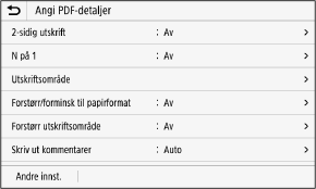 Når du vil vise skjermbildet, trykker du på [Angi PDF-detaljer] på skjermbildet for minnemedia-utskrift.