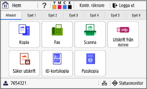 ![]() | Snabbvalsknapp (kopiera) Hämtar de kopieringsinställningar som har registrerats som favoritinställningar. Namnet på knappen beror på inställningen. Lägga till snabbvalsknappar |