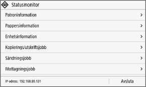 Den här skärmen visas när du trycker på [Statusmonitor] på skärmen [Hem] och andra platser.