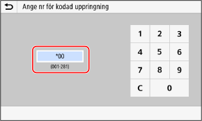 Skärmen [Ange nr för kodad uppringning] visas.