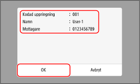 Kontrollera att mottagaren är rätt angiven och tryck sedan på [OK].