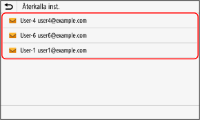 Tryck på [Återkalla inst.] på fliken [Ange mottagare] på skannings- eller faxskärmen.