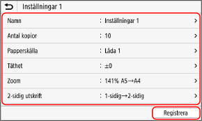 Välj en inställning som inte har registrerats och tryck på [Registrera].