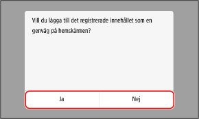 När du väljer [Nej] registreras favoritinställningen men ingen snabbvalsknapp läggs till. Du kan lägga till en snabbvalsknapp på skärmen [Hem] senare.
