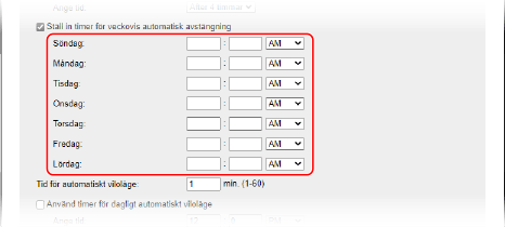 Markera kryssrutan [Ställ in timer för veckovis automatisk avstängning].