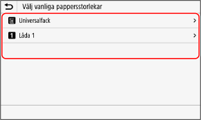 Skärmen [Välj vanliga pappersstorlekar] visas.