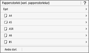 Tryck på [Andra storl.] och välj pappersformatet i listan som visas.