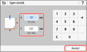 2 | Ange värden i [X] och [Y] och tryck på [Använd]. När vanligt förekommande icke-standardformat har registrerats kan du använda dem genom att trycka på [S1] - [S3]. |