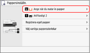 Om du alltid använder samma papper i universalfacket kan du registrera pappersformat och papperstyp. Det förhindrar att skärmen för pappersinställningar visas vilket besparar dig arbetet med att ange inställningarna.