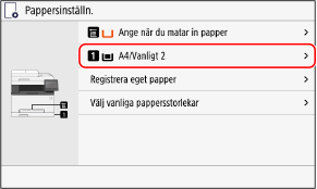 Standardinställningen för pappersformat och papperstyp är A4 och Vanligt 2. Ändra pappersinställning om du använder annat format eller annan typ.