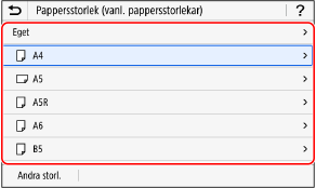Välj pappersformatet som har fyllts på i papperslådan.