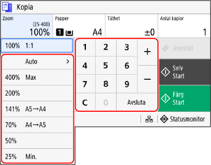 Zoomning anges automatiskt beroende på formatet på papperet som används för kopiering.
