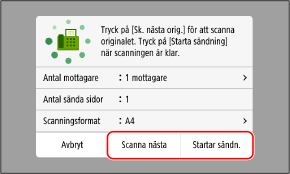 Om du vill fortsätta att skanna original placerar du dem på glasskivan och trycker på [Scanna nästa].