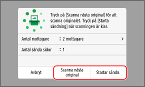 Om du vill fortsätta att skanna original placerar du på dem glasskivan och trycker på [Scanna nästa original].