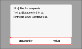 Skannade data skickas när skanningen är klar. Använd [Statusmonitor] om du vill se sändningsstatus och -logg. Kontrollera status och logg för skannade data som skickas och sparas