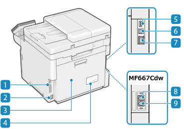Öppna den bakre luckan när papper har fastnat inne i enheten.