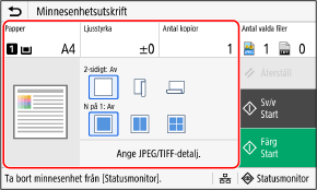 Sätta i och ta bort ett USB-minneTryck på [Minnesenhetsutskrift] om skärmen för användning av minnesmedia öppnas och fortsätt till steg 3.