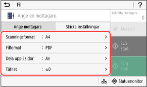Ange skanningsinställningar på fliken [Skicka inställningar]. Skanningsinställningar