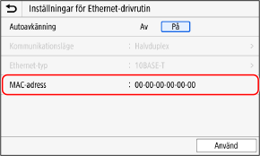 Du kan se enhetens MAC-adress när enheten är ansluten till trådbundet LAN.