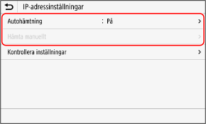 1 | Tryck på [Autohämtning]. Skärmen [IP-adressinställningar (autohämtning)] visas. |
