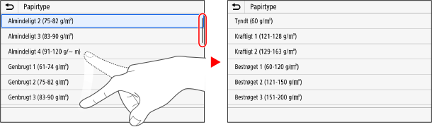 Bevæg fingerspidsen, mens du berører skærmen, og slip den ved det ønskede sted. Du kan rulle ned på lister og flytte det område, du rører ved, til en ønsket position.