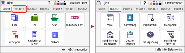 Når du trykker på en fane, vises skærmen for den valgte fane.