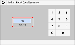 Skærmen [Indtast Kodet Opkaldsnummer] vises.