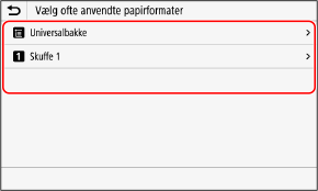 Skærmen [Vælg ofte anvendte papirformater] vises.
