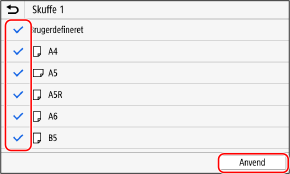 Ryd afkrydsningsfelterne for de papirstørrelser, du ønsker at skjule, og klik på [Anvend].