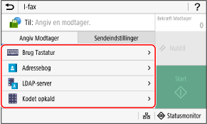 | | Internetfax (I-Fax) er en funktion til afsendelse og modtagelse af fax via internettet. Dermed kan du sende en fax uden at bruge en telefonlinje og herved sænke kommunikationsomkostningerne. Når du modtager en I-Fax, udskrives de modtagne data automatisk. Maskinerne til afsendelse og modtagelse af I-Fax skal understøtte I-Fax-teknologi. |