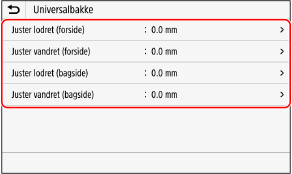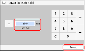 Angiv justeringsbredden ved at vælge en positiv værdi, der justerer positionen til højre på papiret, eller en negativ værdi, der justerer positionen til venstre på papiret.