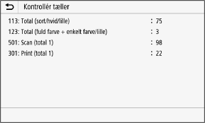 På kontrolpanelet skal du trykke på [Kontrollér tæller] på skærmen [Hjem].