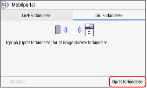 Foretag forberedelser på maskinen, som f.eks. aktivering af funktionen Direkte forbindelse. Forberedelse til direkte forbindelse For at oprette forbindelse ved at scanne QR-koden skal du installere Canon PRINT på mobilenheden. |
