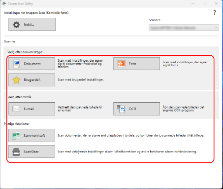 Brug af en dedikeret applikation til at udføre scanning - Scan Utility