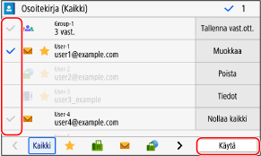 Paina [Koti]-näytössä tai skannaus- tai faksausnäytössä [Osoitekirja].