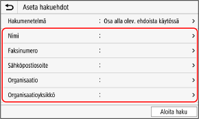 Valitse [Hakumenetelmä] ja valitse hakuehdot.