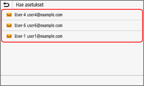 Voit määrittää aiemmin käytettyjä kohteita avaamalla lähetystyölokin käyttöpaneelin skannaus- tai faksausnäytöstä. Voit myös käyttää datan lähettämiseen käytettyjä skannausasetuksia yhdessä kohteiden kanssa.