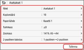 Jos haluat muuttaa asetuksia, valitse muutettava kohde ja muuta asetusta.