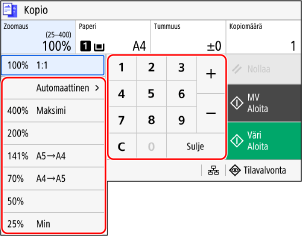 Zoomaussuhde määritetään automaattisesti kopiointiin käytettävän paperin mukaan.