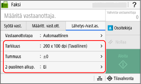 Määritä kohde [Syötä vast.]-välilehdessä, [Määritt. vast.ott.]-välilehdessä tai kohdassa [Osoitekirja].