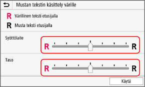 Suorita säätö kohdassa [Syöttölaite] tai [Taso] antamalla etusija joko värillisen tai mustan tekstin toistamiselle.