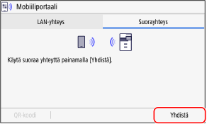 | | | Käytä Canon PRINT -sovellusta helppoon yhdistämiseen skannaamalla mobiililaitteella laitteen näytössä näkyvä QR-koodi. |