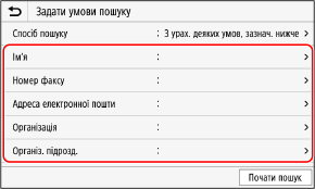 Виберіть [Спосіб пошуку], а потім виберіть умови пошуку.