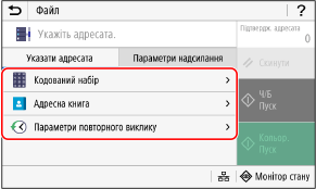 Якщо вибір адресатів у функції надсилання обмежений через параметри автентифікації, ви не зможете вибрати іншого адресата. За докладною інформацією звертайтеся до адміністратора.