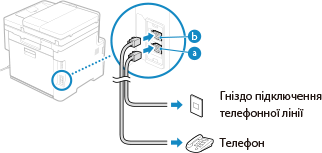 ) на апараті та роз’єму для телефонної лінії на стіні.