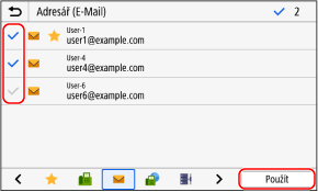 Pokud se zobrazí obrazovka [PIN adresáře], zadejte příslušný kód PIN a klikněte na tlačítko [Použít].