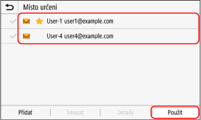 Chcete-li zobrazit informace o místu určení, vyberte zaškrtávací políčko daného místa určení a stiskněte tlačítko [Detaily].